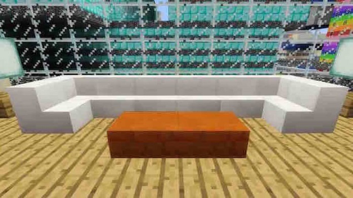 Whether it be in actual life or game life, couches are the most important thing in living rooms. You can simply replicate your desired type of sofa or couch in the game. To make a Minecraft couch, all you want to do is to put two or more stair blocks next to each other in L- shape. To make it longer, place more slabs and surround them with wool blocks to make it elegant and fluffy.